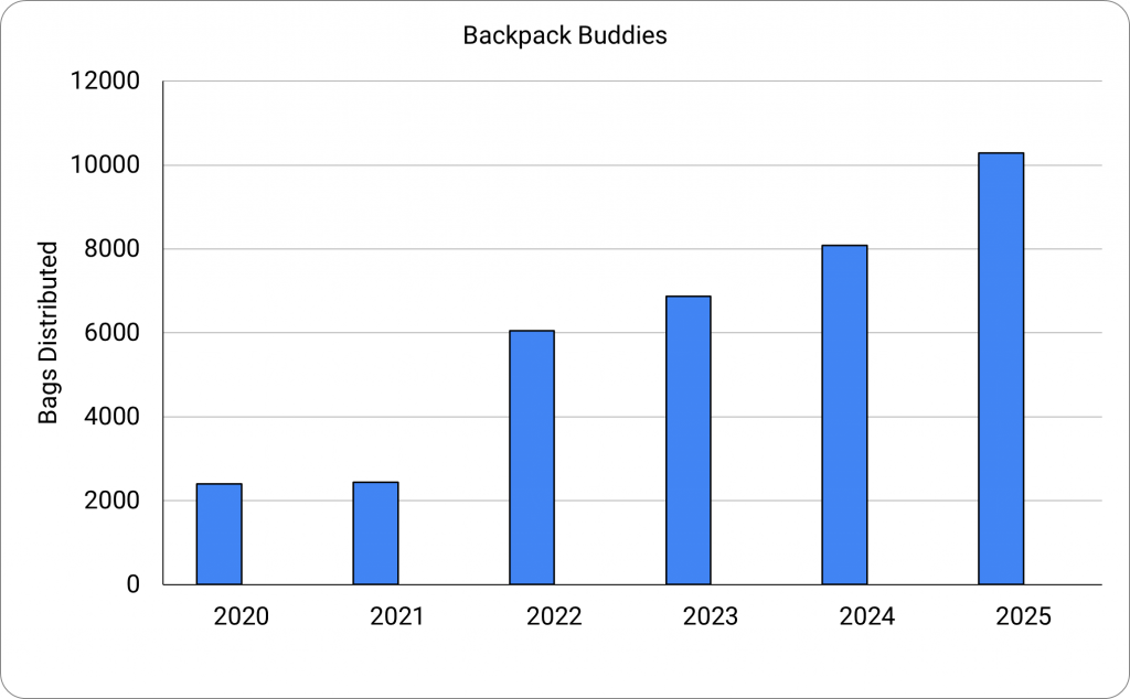 10,293 Backpack Buddies bags distributed to our school partners in 2025