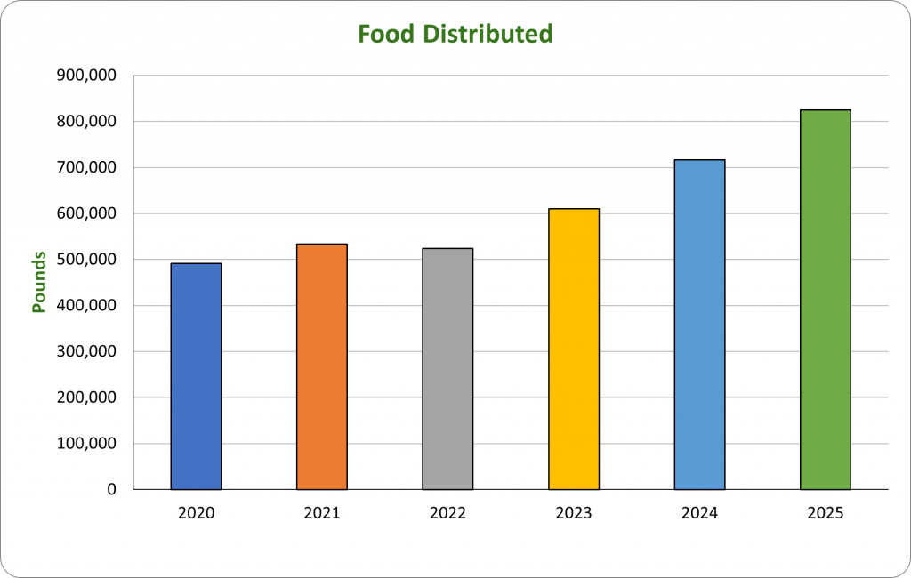 824,726 lbs of food distributed to guests in 2025
